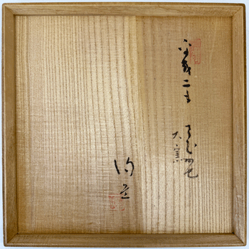 径26.3cm 高さ3.0cm ¥280,000 森陶岳先生が平成二年に東京・三越会場にて発表した第二回目寒風大窯展の作品です。 白い焼成と緋襷の赤、そして厚く掛かった黄ゴマの美しさが観る者に迫ります。 この後、備前焼の食器はこのスタイルがスタンダードに成りました。