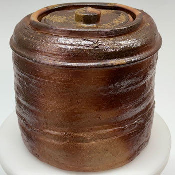 高さ19.3cm 胴径20.3cm ¥780,000 森陶岳先生が昭和49年(1974年・37歳の時)に東京・伊勢丹で開催した個展で発表した作品。 堂々とした姿は置水指として風格を漂わせています。