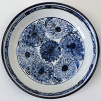 | 近藤 悠三(こんどう ゆうぞう) 1902年(明治35年)京都市清水寺下に生れる。本名は近藤雄三 1914年(大正3年・12歳)から1917年(大正10年・19歳)まで京都市立陶磁器試験所付属轆轤科にて修業。この間に、その技量と人柄を認められて河井寛次郎先生、濱田庄司先生の知遇を得る。 1921年(大正10年・19歳)河井・濱田両先生の薦めで富本憲吉先生の助手となる。 1924年(大正13年・22歳)富本憲吉先生の許しを得て、独立する。 1927年(昭和2年・25歳)大山巌閣下の勧めにより、東京銀座「美術園」にて始めての個展を開催。 1969年(昭和44年・67歳)京都市立芸術大学初代学長に就任する。 1970年(昭和45年・68歳)紫綬褒章受賞。 1977年(昭和52年・75歳)染付の技法で国指定重要無形文化財技術保持者(人間国宝)に認定。 1985 年(昭和60年・83歳)胃がんのため逝去。 |