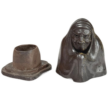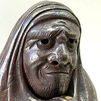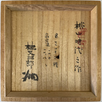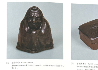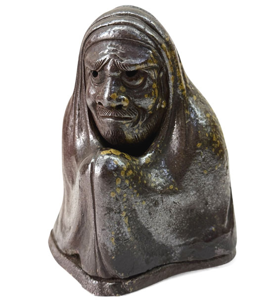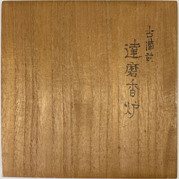 高さ13.0cm 幅11.0cm*11.8cm ¥750,000 桃山時代 一見して素朴な風合いの香炉ですが、達磨の眉毛・髭や表情に至るまで繊細な箆作業が加えられています。 初期備前焼細工物を代表する名品です。 複数の書物に所載しています。