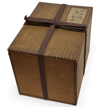 高さ19.7cm 底径11.4cm ¥375,000 閑谷焼は江戸時代・寛文年間(1661年~1673年)に 備前岡山藩主・池田光政の時代に京都から仁清など優れた陶工を招聘して、主として公卿に対する献上の目的で制作された稀少な焼物です。 この鳥は愛玩用として飼育された唐丸(とうまる)と、唐丸籠を題材に制作しています。 唐丸の細やかな毛彫と唐丸籠の籠目は超絶技巧の繊細な技物です。