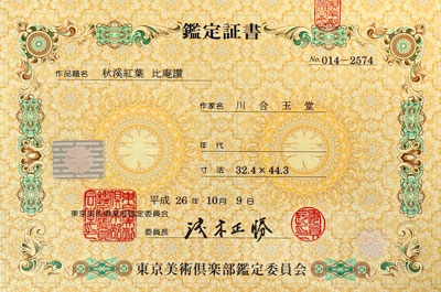 額の大きさ:横63.4cm たて51.3cm ¥270,000 「鳴くこえの まづきこえつつ ふるさとの霧に薄るるカラスとぶかも 比庵」 文化勲章授賞者の日本画家・川合玉堂先生と清水比庵先生は深い敬愛の心で結ばれて合作を制作しています。 それは多摩に在った玉堂先生の画室で生れました。 この作品に対して川合玉堂の鑑定書が添えられています。