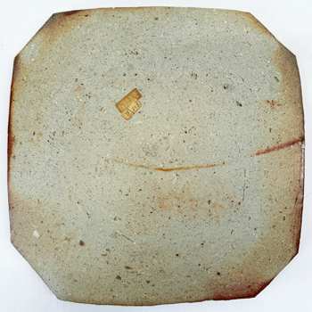 径26.3cm 高さ3.0cm ¥280,000 森陶岳先生が平成二年に東京・三越会場にて発表した第二回目寒風大窯展の作品です。 白い焼成と緋襷の赤、そして厚く掛かった黄ゴマの美しさが観る者に迫ります。 この後、備前焼の食器はこのスタイルがスタンダードに成りました。